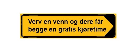 Vår beste markedsføring er fornøyde kunder som forteller videre om sine gode erfaringer hos oss. Vi er så glade for at du vil fortelle dine venner om oss at vi gir både deg og vennen din en GRATIS kjøretime dersom den du verver starter å kjøre hos oss. Verv i vei!